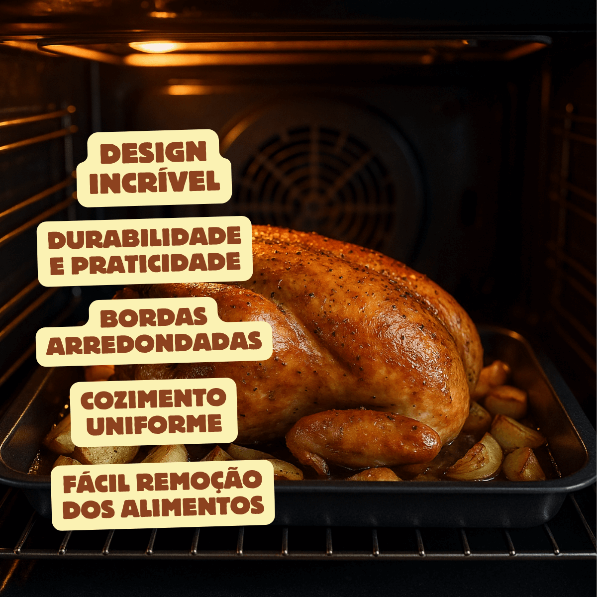 Cozimento uniforme: assados perfeitos, dourados por igual